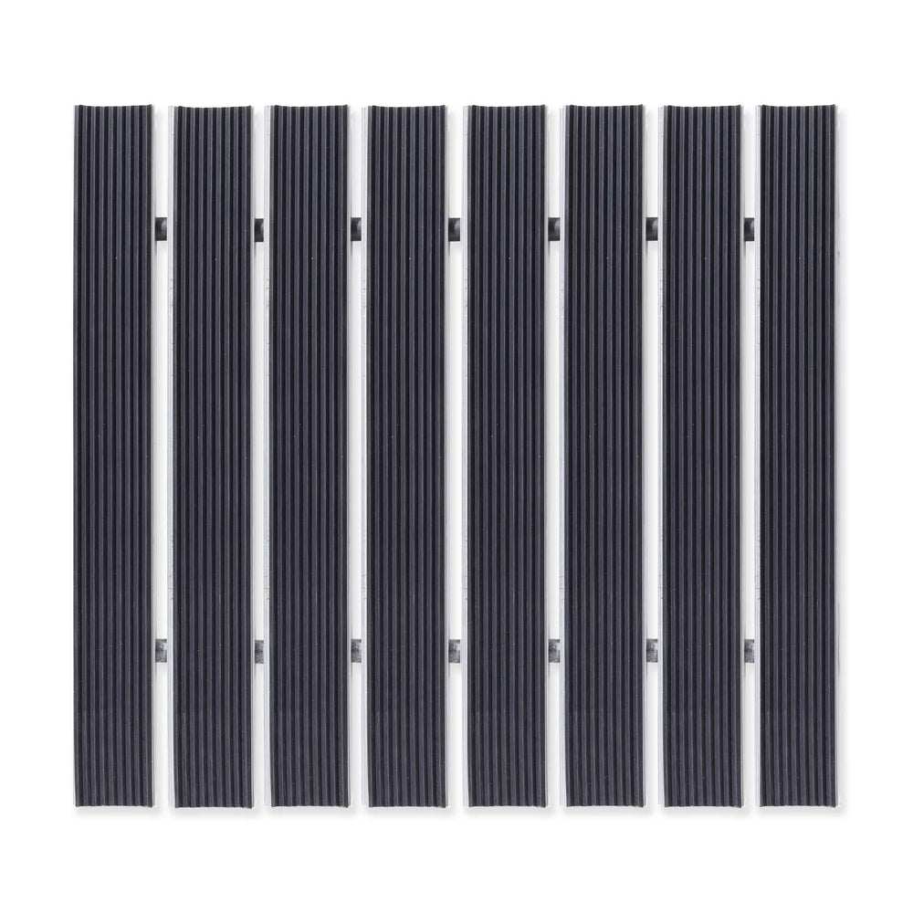 Les systèmes de tapis d'entrée ALUPRO, dotés de tapis haute performance avec insert en caoutchouc, sont équipés de lattes robustes qui éliminent efficacement les saletés grossières des chaussures. Ces lattes, à la fois élastiques et résistantes à la déchirure, offrent une longue durée de vie grâce à leur résistance accrue à l'abrasion, ce qui les rend parfaitement adaptés aux zones à fort passage.