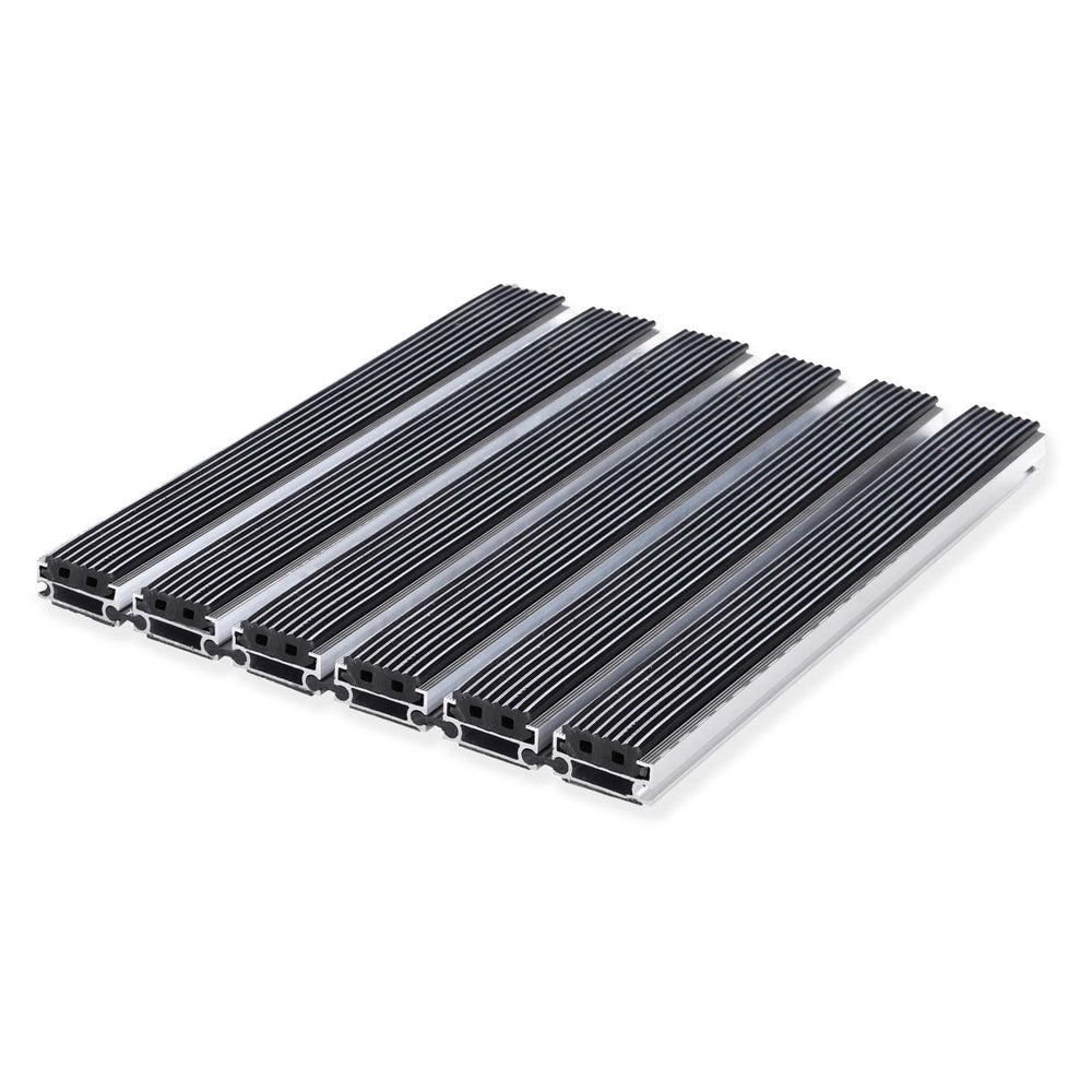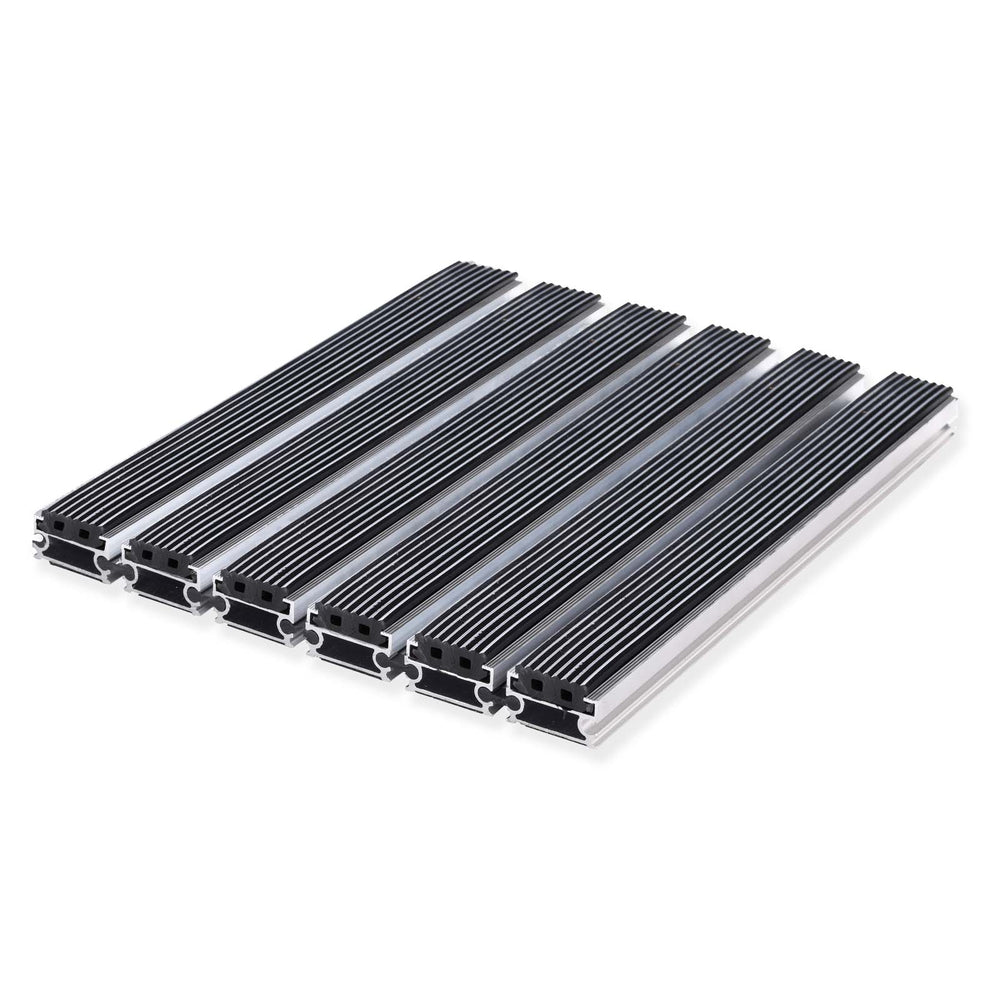 Les tapis peuvent être découpés sur mesure et adaptés précisément aux spécificités de votre site. Leur largeur minimale est de 100 cm et leur largeur maximale de 5 m. Nous proposons des longueurs comprises entre 60 et 500 cm. La hauteur des tapis ALUFLOW à lattes en caoutchouc est également personnalisable.