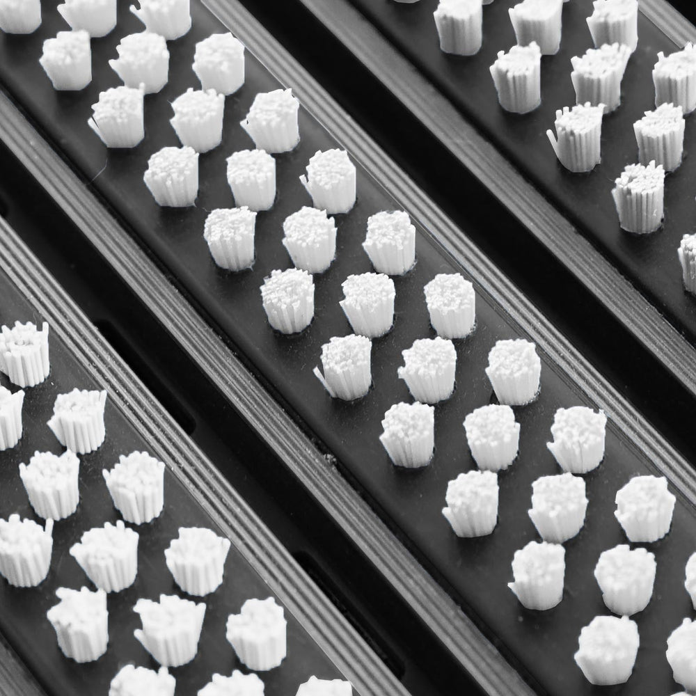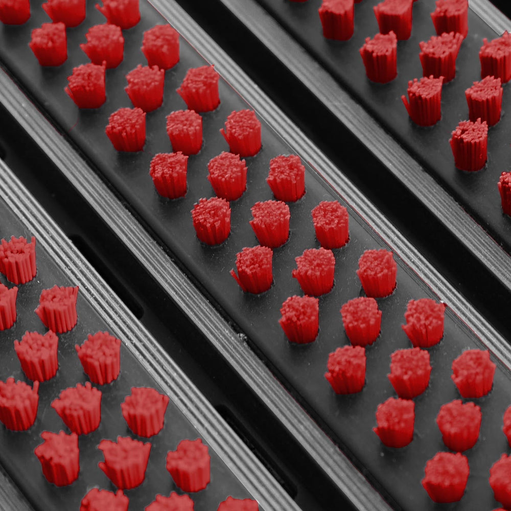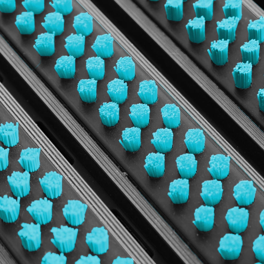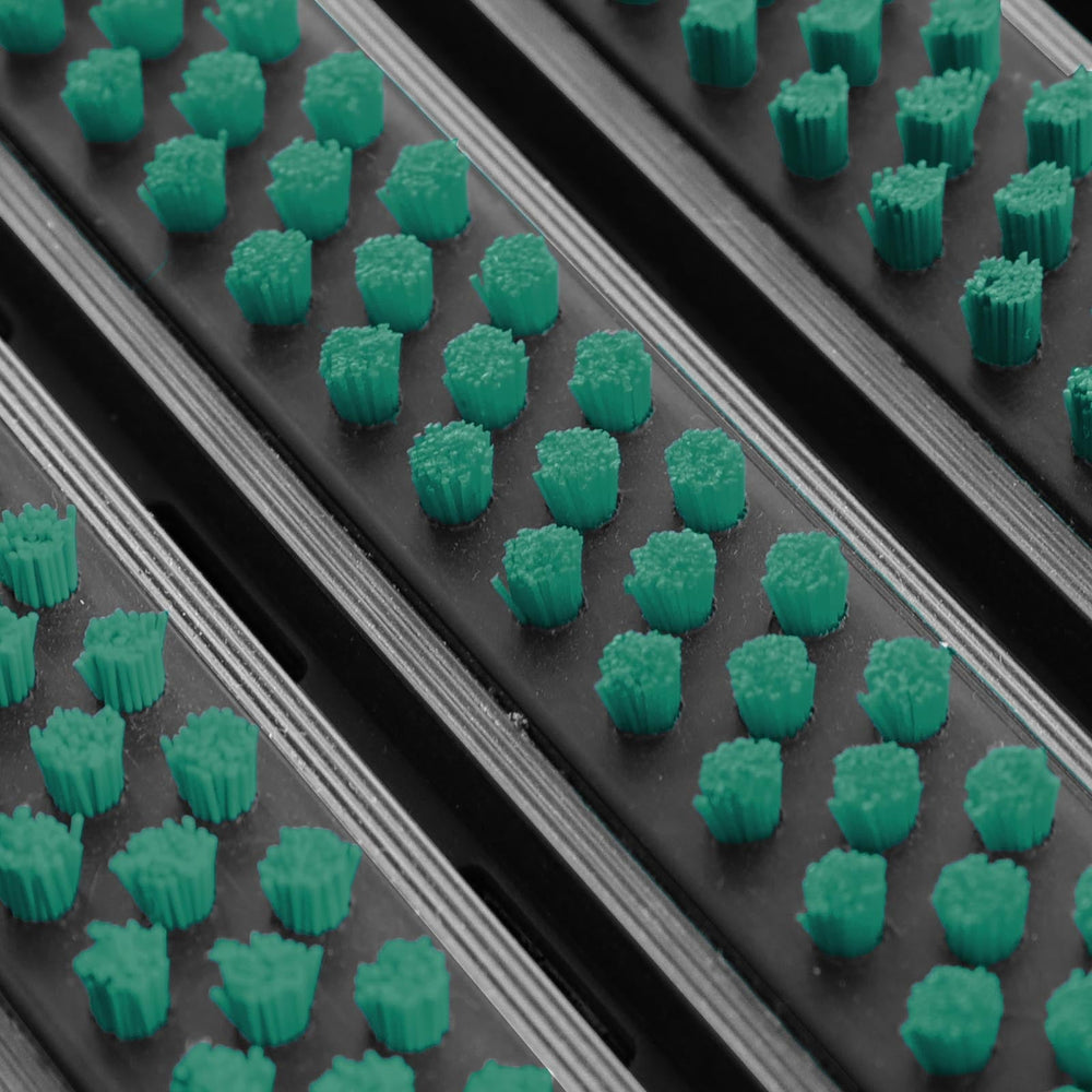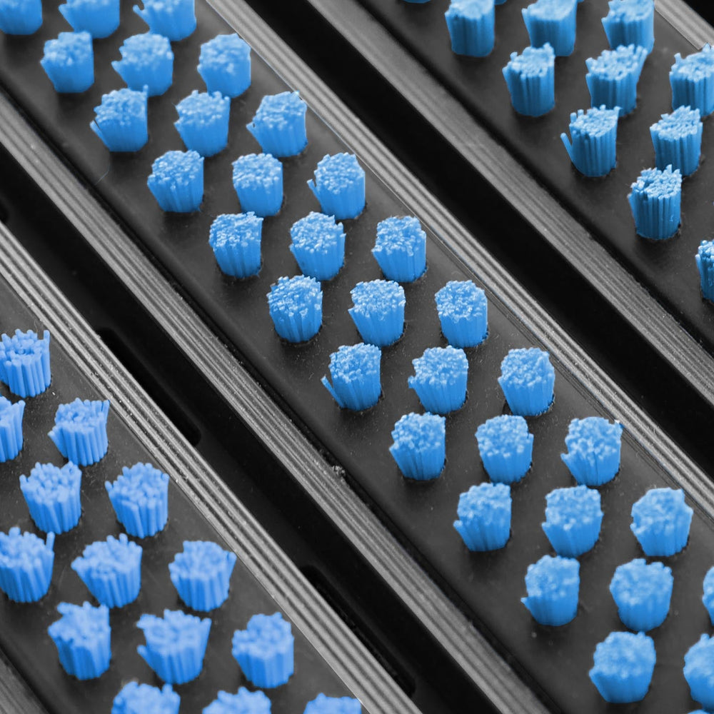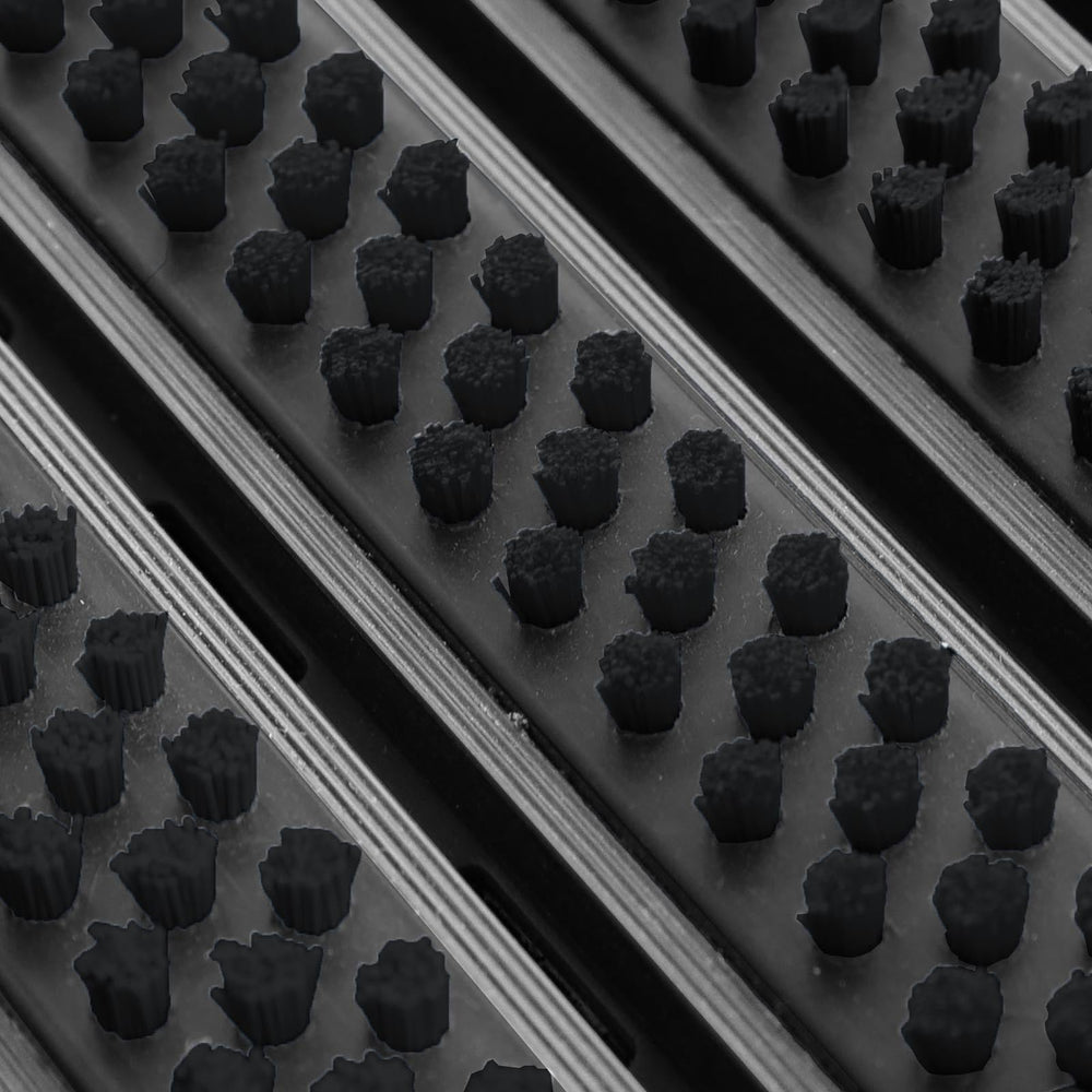 Les zones de nettoyage ALUFPRO, équipées de tapis haute performance et d'inserts brosses, comportent des brosses en nylon intégrées à des lattes en plastique rigide qui éliminent les saletés grossières des chaussures. Ces brosses sont à la fois élastiques et résistantes à la déchirure, et leur résistance accrue à l'abrasion leur assure une longue durée de vie. Elles sont ainsi idéales pour les zones à fort passage.