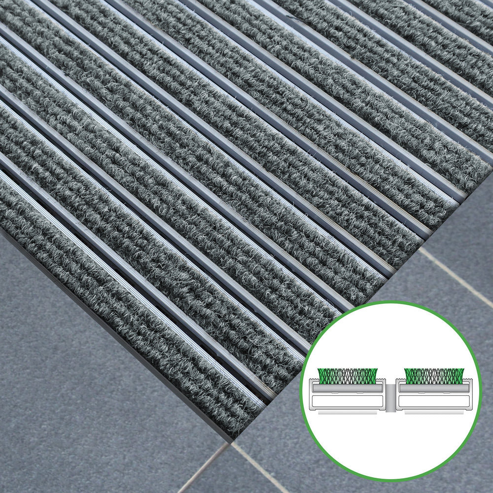 Les tapis ALUPRO, composés de profilés en aluminium et d'un insert en feutre aiguilleté, sont conçus pour les zones de nettoyage et fabriqués à partir de matériaux de haute qualité. Leur surface de marche se caractérise par une longue durée de vie grâce à une résistance accrue à l'abrasion, garantissant ainsi une résistance optimale même à un trafic piétonnier intense.