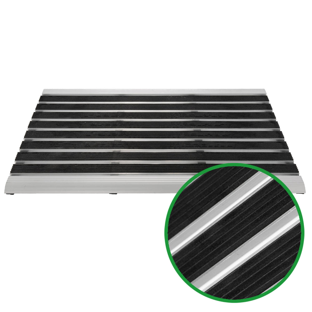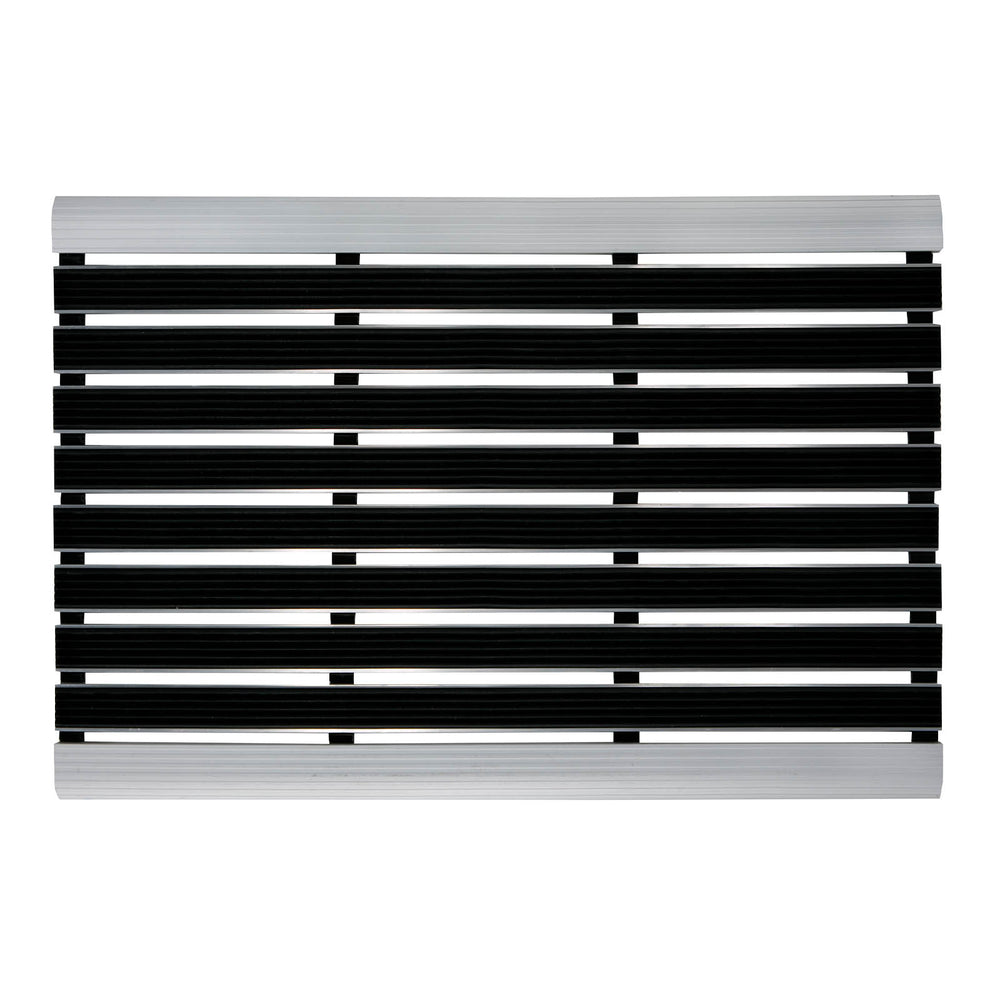 Le grattoir à chaussures DOOR STEP, avec son cadre en aluminium, allie esthétique et fonctionnalité. Son revêtement en caoutchouc à lattes est idéal pour éliminer la saleté et l'humidité. Ce tapis offre d'excellentes performances de nettoyage, notamment dans les zones d'entrée à fort passage.