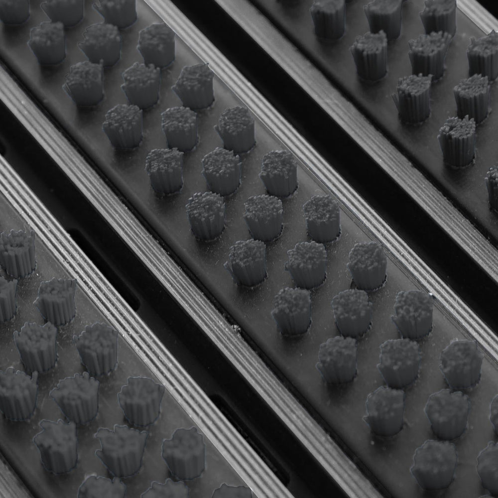 Le tapis brosse est particulièrement adapté aux espaces extérieurs, car il permet d'éliminer les saletés grossières des chaussures de vos visiteurs avant même leur entrée dans vos locaux. Cela correspond à la zone 1 d'un tapis anti-salissures classique en trois parties. Vous trouverez de plus amples informations et les tapis adaptés à chaque zone sur notre page « Tapis d'entrée pour sols en contrebas ».