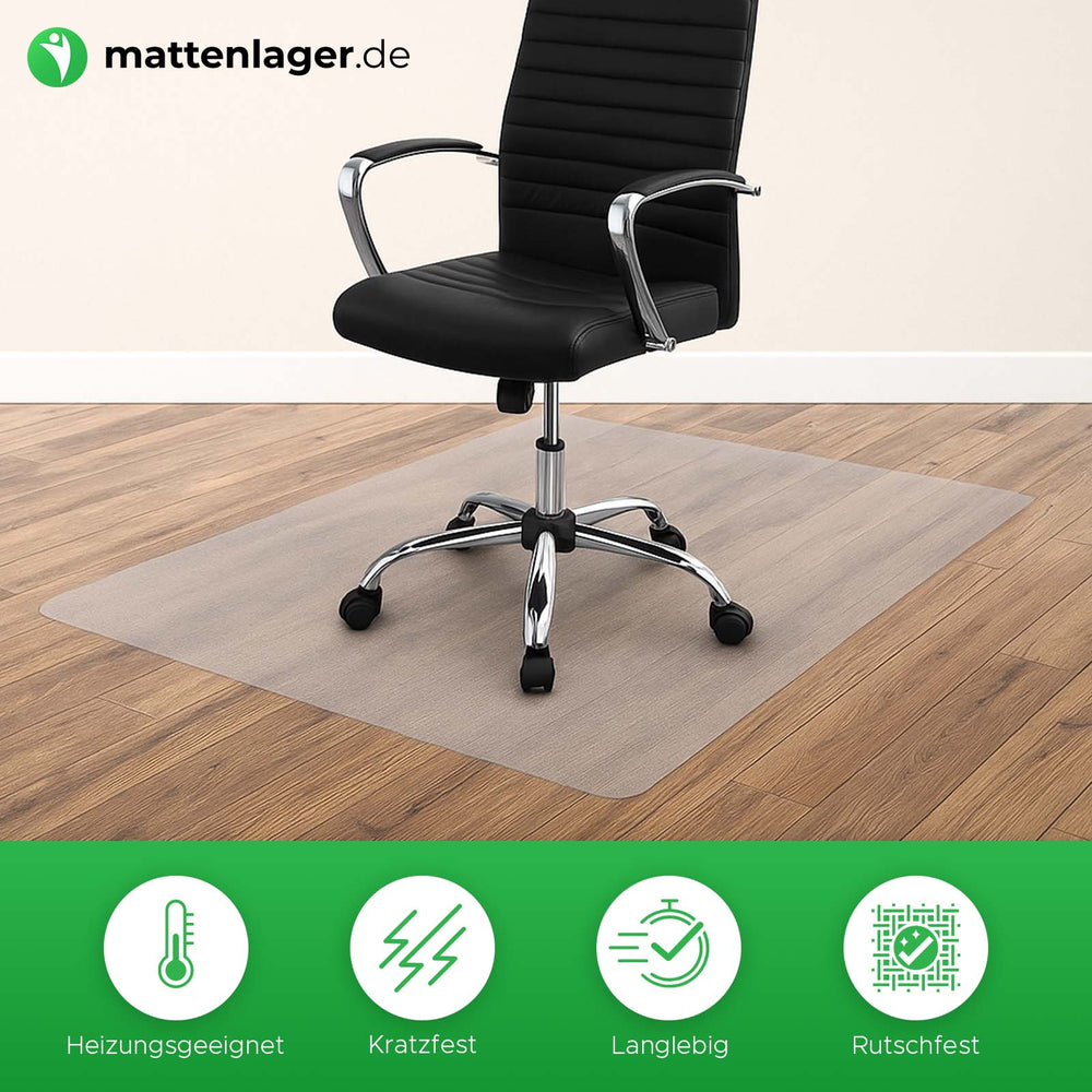 Ce tapis de protection pour chaise de bureau offre une excellente protection à votre sol contre l'usure, les rayures et la saleté. Son adhérence a été particulièrement soignée : après un court temps de pose, il adhère parfaitement aux sols durs comme le parquet, le stratifié, le linoléum ou le carrelage grâce à sa structure antidérapante spéciale et est même compatible avec le chauffage au sol.