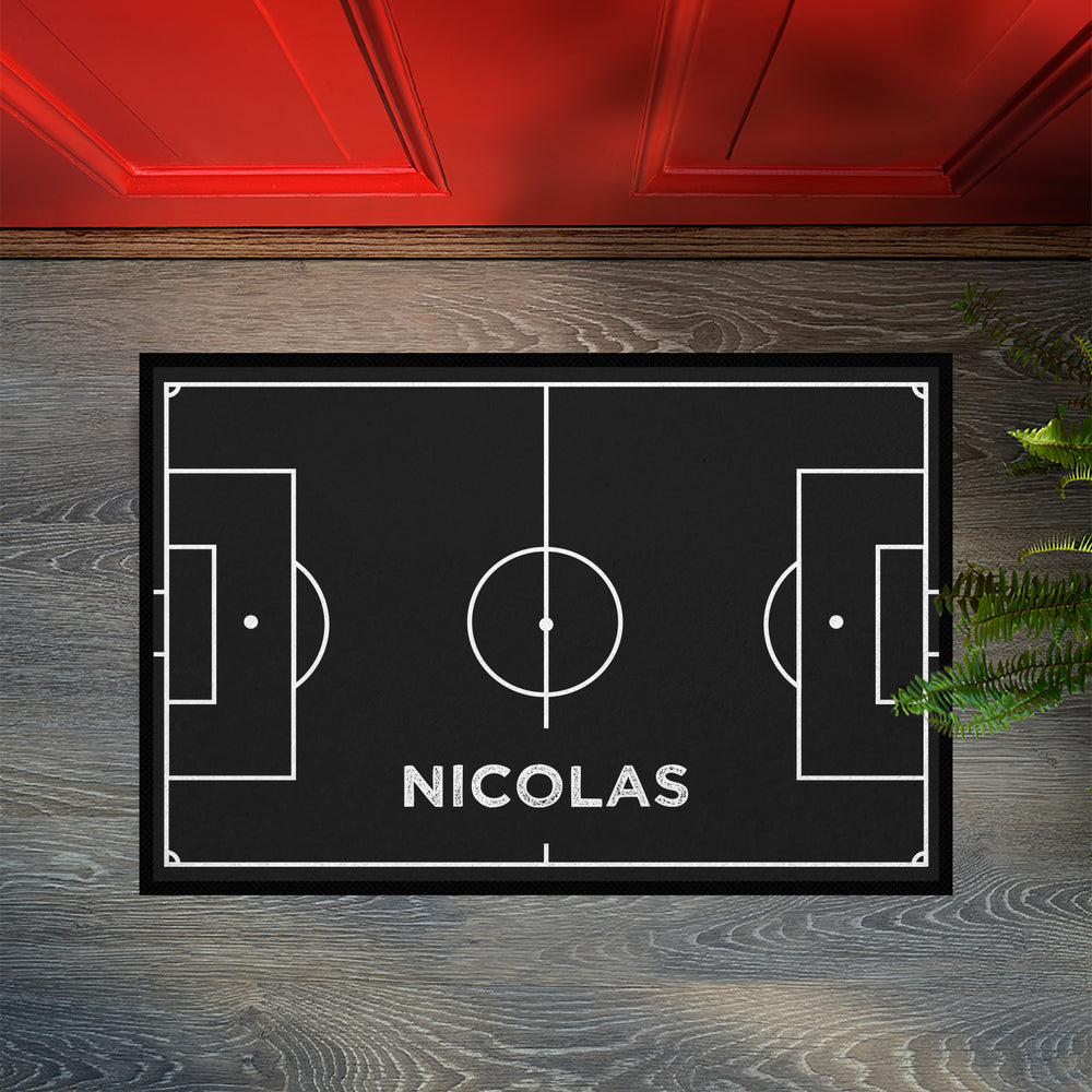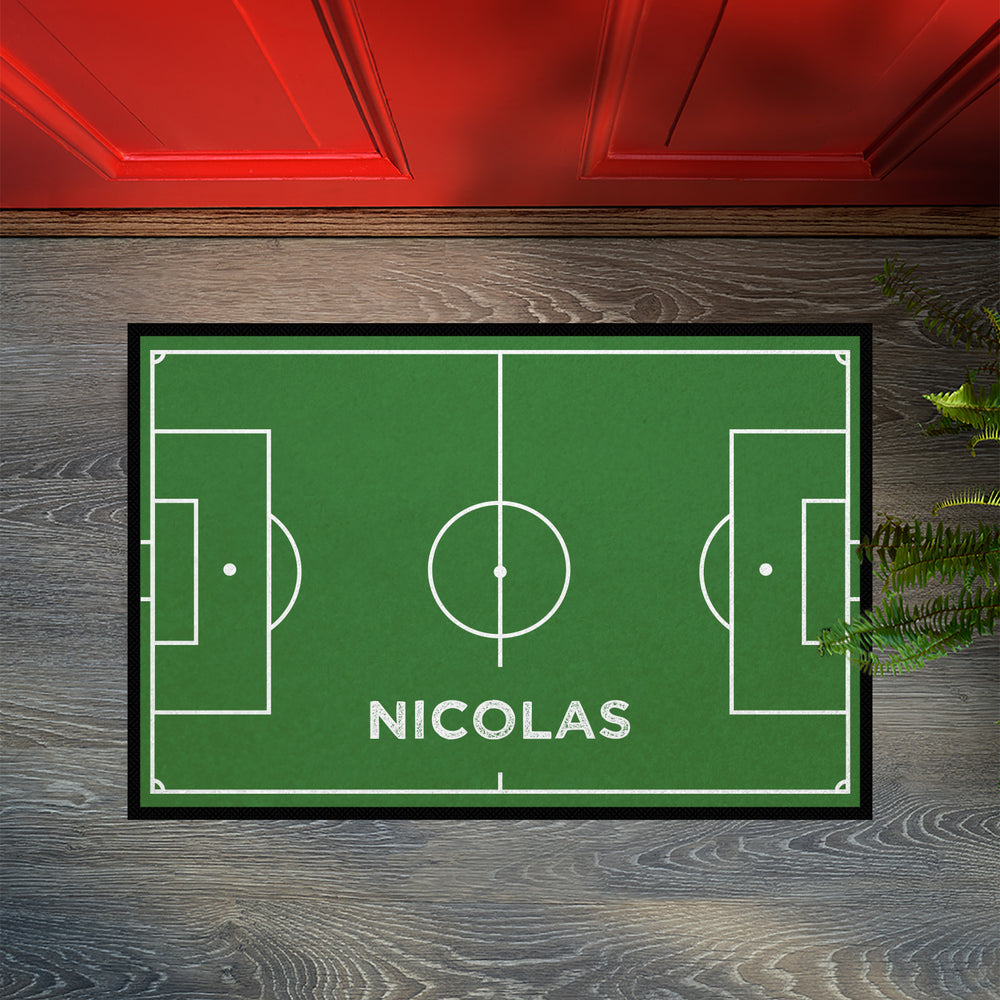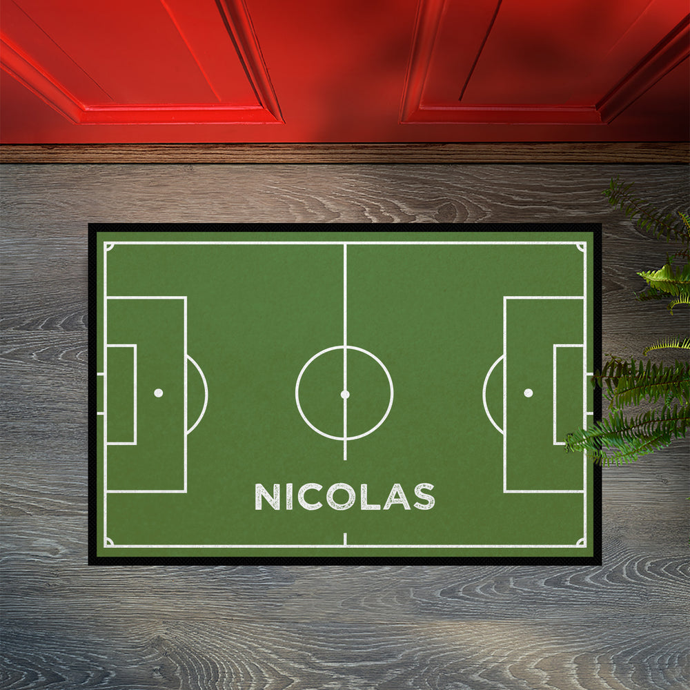 Difficile de faire plus passion pour le sport : avec ce paillasson à motif de terrain de football et votre nom, vous affichez votre sport préféré jusque chez vous et montrez immédiatement ce qui fait vibrer votre cœur de supporter.
